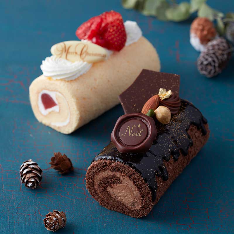 しっとりとしたロール生地にシャンティーにいちごゼリーも一緒に巻き込み、ノエル仕立てにした見た目のサイズも愛らしい、お二人でお召し上がりいただくのに最適なロールケーキです。