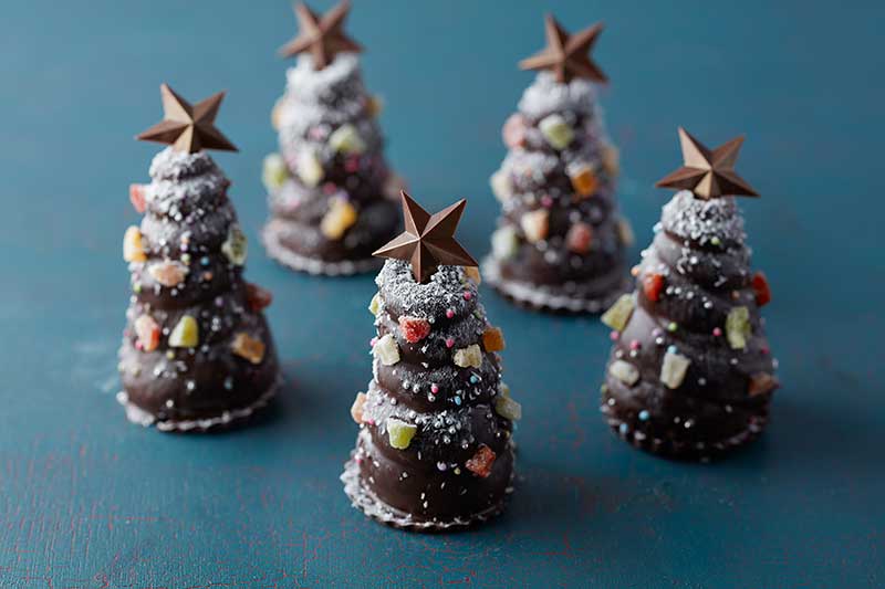 サワークリームの周りをチョコレートでコーティングしてクリスマスツリーのように仕上げたスイーツです。トップには星をあしらい、色とりどりの砂糖菓子とドライフルーツで華やかにトッピングしたかわいらしいクリスマスツリー型で、目でもお楽しみいただけます。