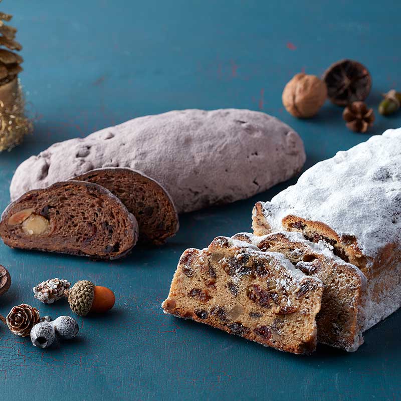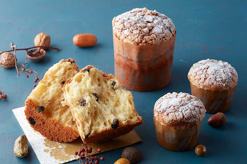 卵黄やバターをふんだんに使った生地にラムレーズン、オレンジピール、シトロンピールを混ぜ込み、生地の濃厚さと具材の爽やかさを軽い焼き上がりの食感とともにお楽しみいただける、イタリアの伝統的なクリスマスの焼き菓子です。