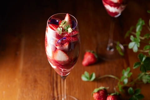 ピスタチオの香りがアクセントの「完熟いちご&ピスタチオのアレキサンダー」や、口当たりが柔らかく、お酒の甘味を引き出してくれるヒマラヤ塩を使用した「完熟いちご&ヒマラヤ塩のマルガリータ」、シンプルながらも新しい味わいの、「完熟いちご&アールグレイのマティーニ」など、まるで宝石のようなカクテルです。