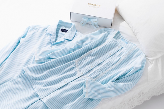 KID BLUE(キッドブルー)は、2019年にブランド創立40周年を迎える、「気持ちの良い時間 気持ちの良い空間」をテーマに上質で心安らぐインライフアイテムをご提案しているインナー&ウェアブランドです。綿100%、ダブルガーゼのパジャマは柔らかく軽い着心地と清潔感のあるカラーで長きに渡りご支持いただいております。