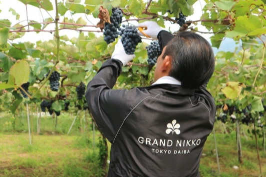 この度、販売されるプライベートワインは、2018年9月に行ったぶどうの収穫から始まり除梗、圧搾、瓶詰め、コルク打栓及びラベルデザインまですべてのワイン造りのプロセスを、当ホテルソムリエをはじめホテル内の有志スタッフにより実施しています。