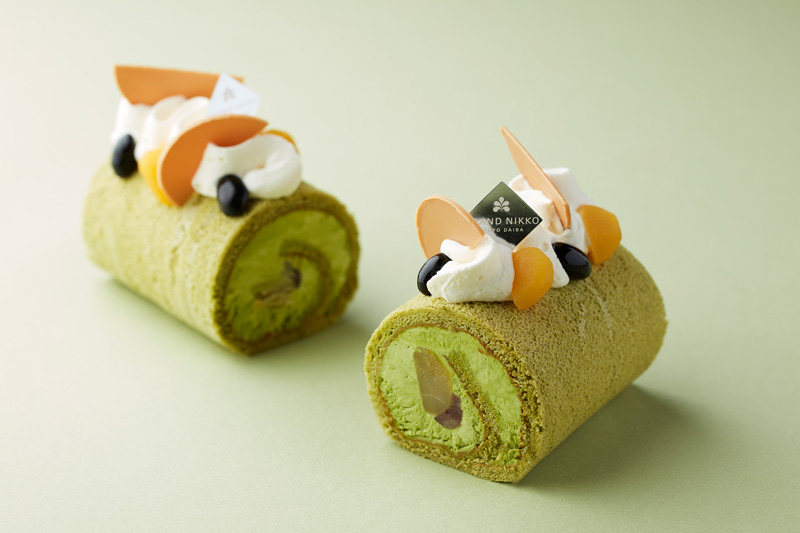 ほろ苦い抹茶のシャンティーと小豆ソース、栗の甘露煮を、しっとりと焼き上げた抹茶のロールで巻き上げた、大人の味わいをお楽しみいただける和テイストのロールケーキです。