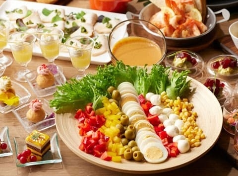 | 料金 | ランチブッフェ 平日¥5,500 土・日・祝日¥7,000 ディナーブッフェ 平日¥7,500 土・日・祝日¥8,500 ------------------------------------------------------------------ ※お盆期間中(8/11~8/15)は、特別料金でのご案内となります。 ランチブッフェ ¥7,500 ディナーブッフェ \8,800 ------------------------------------------------------------------ |