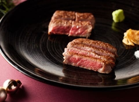 『鉄板焼 銀杏』のクリスマスディナーでは、メインに「くまもと黒毛和牛プレミアム「和王」フィレとサーロインのデュエット」をご用意しました。