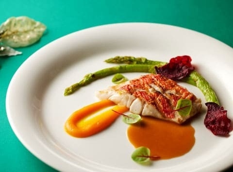 | 金目鯛のグリルと白子のフリット シェリービネガーソース |
