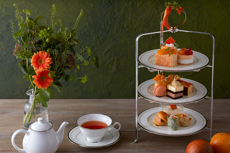 初夏の訪れを見て食べて感じることができる、上品かつ爽やかに華やぐオレンジ色を纏ったアフタヌーンティーセットを、ご友人やご家族とぜひご堪能ください。