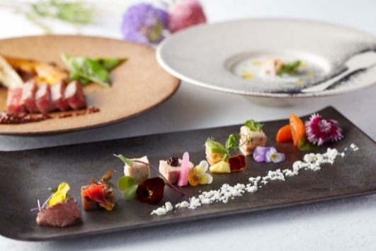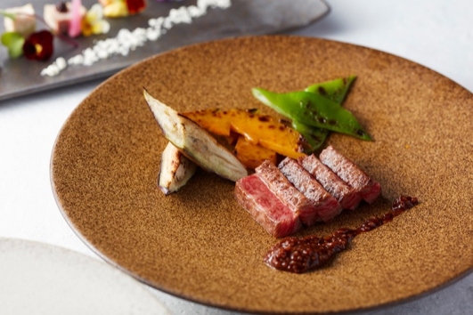 モロッコでしか採れない抗酸化作用の高い貴重なアルガンオイルと色とりどりの花が美しいエディブルフラワーを施したオードブルから、栄養素が多く含まれる古代小麦とカルシウムやミネラルが豊富な竹炭パウダーを使った豆乳スープ、福井県マルカワみその自家採種した玄米麹と小豆島の杉樽仕込み醤油を合わせて1週間発酵熟成した醤油麹とともにお召し上がりいただくメインの黒毛和牛ロースなど、健康や美容への関心の高い女性のお客様にご満足いただけるメニューを提供いたします。
