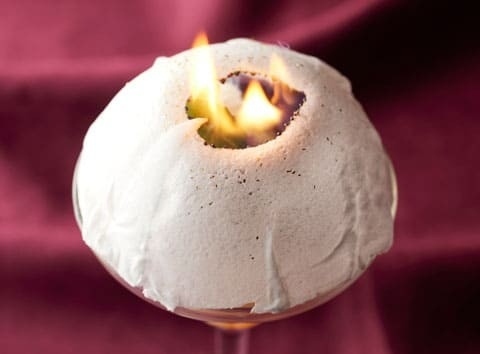 真っ白なドーム状の蓋をかぶせ、バーナーで火をつけると幻想的な炎から美しい秋色のパフェが現れる、ロマンチックな演出とともにお楽しみください。