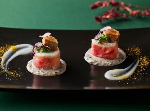 世界三大珍味であるキャビアと、脂の乗ったブリ、さらに毛蟹やウニといった豪華海鮮食材をたっぷりと最中に閉じ込めたアミューズから始まり、クリスマス気分をより一層盛り上げるスペシャルなラインアップをご用意しました。