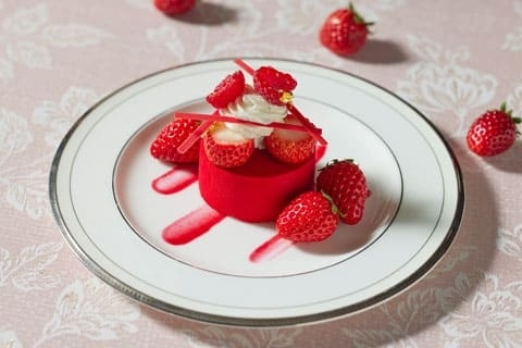 いちごの酸味にホワイトチョコレートの甘さを加えた「いちごのムース」をご用意。