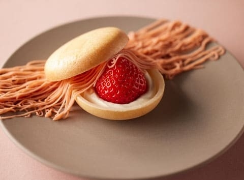 サクサク食感の最中に求肥とシャンティークリーム、いちごを丸ごと乗せ、マスカルポーネを使用した濃厚でコクのあるいちごクリームで仕上げました。
