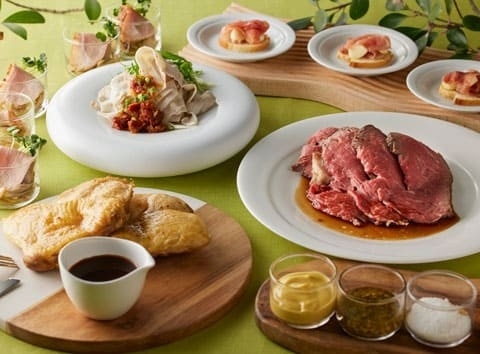 シェフがお客様の目の前でカットするシェフサービスでは、こだわりの真空低温調理で柔らかく仕上げたローストビーフのほか、東京ビーフの肩ロース焼きしゃぶや、トルネードソーセージをご提供します。