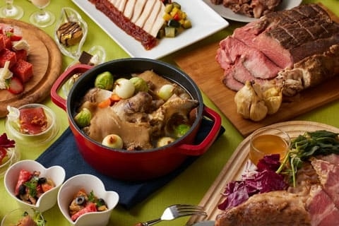 | 料金 | ランチブッフェ 平日¥5,800 土・日・祝日¥7,300 ディナーブッフェ 平日¥7,800 土・日・祝日¥8,800 ※ゴールデンウイーク期間 4月26日(土)~5月6日(火・休)は土・日・祝日料金 ※シニア料金、お子様料金の設定がございます。 |
