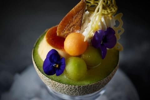 ジューシーなメロンとなめらかなプリン、ブランデーの芳醇な香りが織りなす、大人だけの贅沢な味わいをぜひご堪能ください。