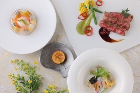 季節の食材を取り入れた人気のコース「シーズナルディナー "5Dishes Course"」。