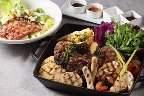 シェフがこだわった青森県産の八甲田牛やガーリック豚、五穀味鶏などのお肉の数々を豪快にグリルにし、ダイナミックな盛り付けでご提供いたします。