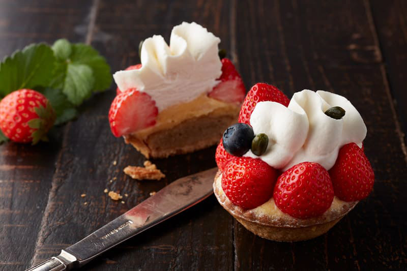 香ばしく焼き上げたサクサクのタルト生地にカスタードクリームを絞り、上にあまおうやブルーベリーを贅沢に乗せた一品。フォルムも可愛らしく、おやつの時間に彩りを添えます。