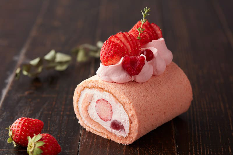 あまおうのゼリーとあまおうが入ったいちごのクリームを、ピンク色の生地で巻き上げたピンクづくしの甘酸っぱいロールケーキです。大切な人に思わず贈りたくなる、幸せ感あふれる商品に仕上げました。