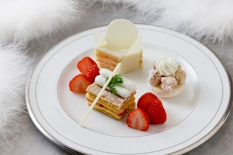 冬の訪れを感じさせるホワイトカラーのスイーツとセイボリーに、真っ赤な旬のあまおうや爽やかなレモンをアクセントとして添え、見た目の美しさと香りの豊かさどちらもお楽しみいただけるラインアップです。