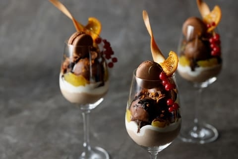 11・12月は、芳醇なグランマルニエをまとったオレンジと、幾重にも重なるショコラの深い味わいが魅力の「大人のショコラオレンジパフェ」が登場いたします。