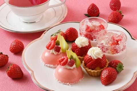 1・2月は、真紅に煌めく旬の“あまおう”を主役にした「あまおうアフタヌーンティーセット ~赤い宝石~」をご用意しました。