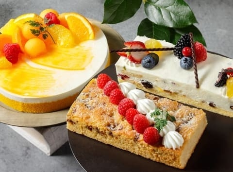 | オレンジムース/メロンガトー/シトロンショコラムース/ガトーバナーヌ/ ロールケーキカスタード/カッサータ/白桃のガトーアップルピーチムース |