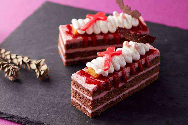 チョコレート生地とイタリア産バルサミコ酢入りフランボワーズガナッシュを交互に重ねたケーキの上に、ミイラに見立てたかぼちゃのフィナンシェを飾ったハロウィンらしさのある商品です。