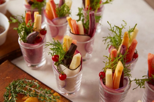 その他にも、無農薬栽培にこだわっている埼玉県・所沢市にある契約農家で採れた野菜を使用した「陽子ファーム 根菜ツリー仕立て」、ほうれん草の緑とパプリカの赤のコントラストが楽しい「クリスマス風キッシュ」、口の中でほろほろと崩れる「和牛スネ肉のシチュー」など、様々なメニューをご用意しております。
