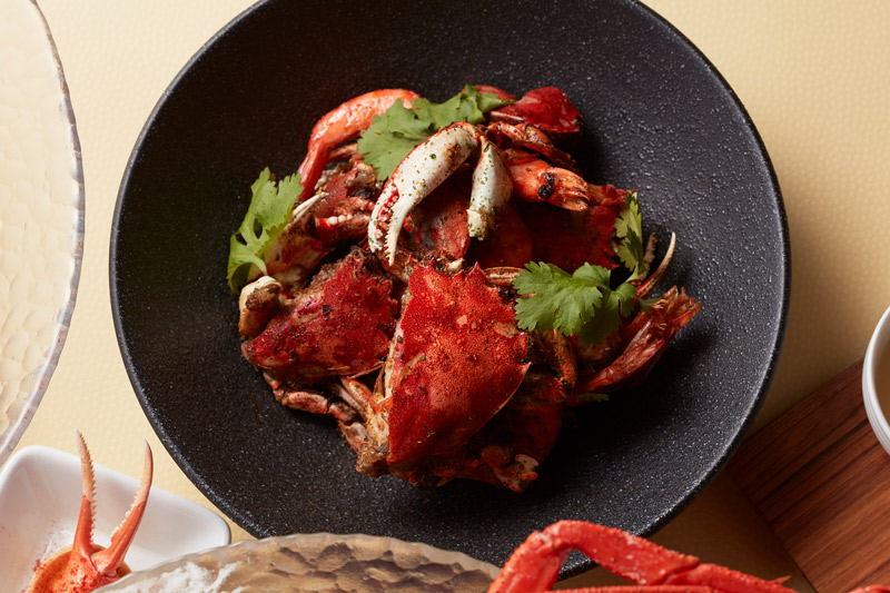 「ソフトシェルクラブとシュリンプのケイジャンスタイル」は甲羅まで食べられるソフトシェルクラブとシュリンプをケイジャンで旨辛く仕上げました。