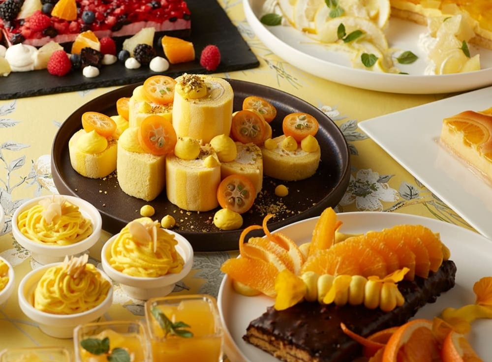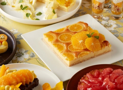 “旬の柑橘づくし!オレンジカラーデザートブッフェ”として、ババロワムースをビスキュイ生地で包んだ「シャルロットバニーユ」やフレッシュなオレンジをふんだんに使用した「ショコラオランジェ」、「オレンジモンブラン」など柑橘の爽やかな香りと甘ずっぱさを楽しめるデザートをご用意しました。