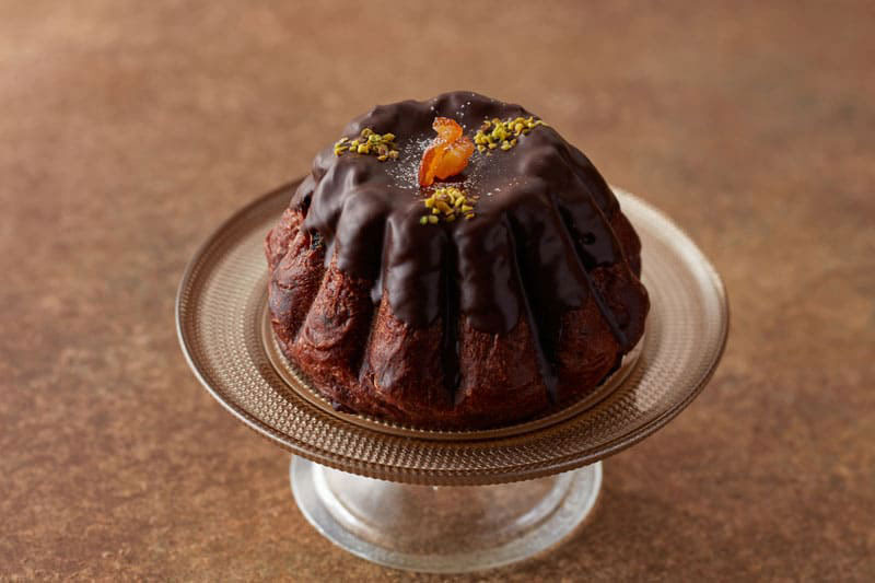 チョコレートのブリオッシュ生地にラムレーズン、オレンジピールを練り込み、ラム酒シロップを塗った大人のスイーツです。