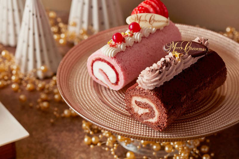 鮮やかなベリーの赤色が美しい「フリュイルージュ」や雪景色を思わせる「ノエルフロマージュ」、異なるフレーバーのチョコレートを楽しめる「ノエルショコラ」などテーブルを彩る様々なケーキをご用意しました。