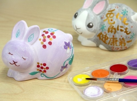 来年が良い年であるよう願いを込めながら、好きな色を塗って世界で一つだけのオリジナル干支を作っちゃおう!!干支はうさぎになります。
