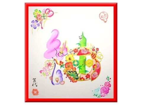 日本古来の吉祥の絵柄や動植物などを組み合わせて文字を描いていきます。