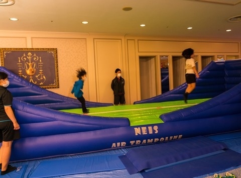 ふわふわトランポリンで楽しもう!!会員制フィットネスクラブ「Le CLUB」スタッフがサポートいたします。