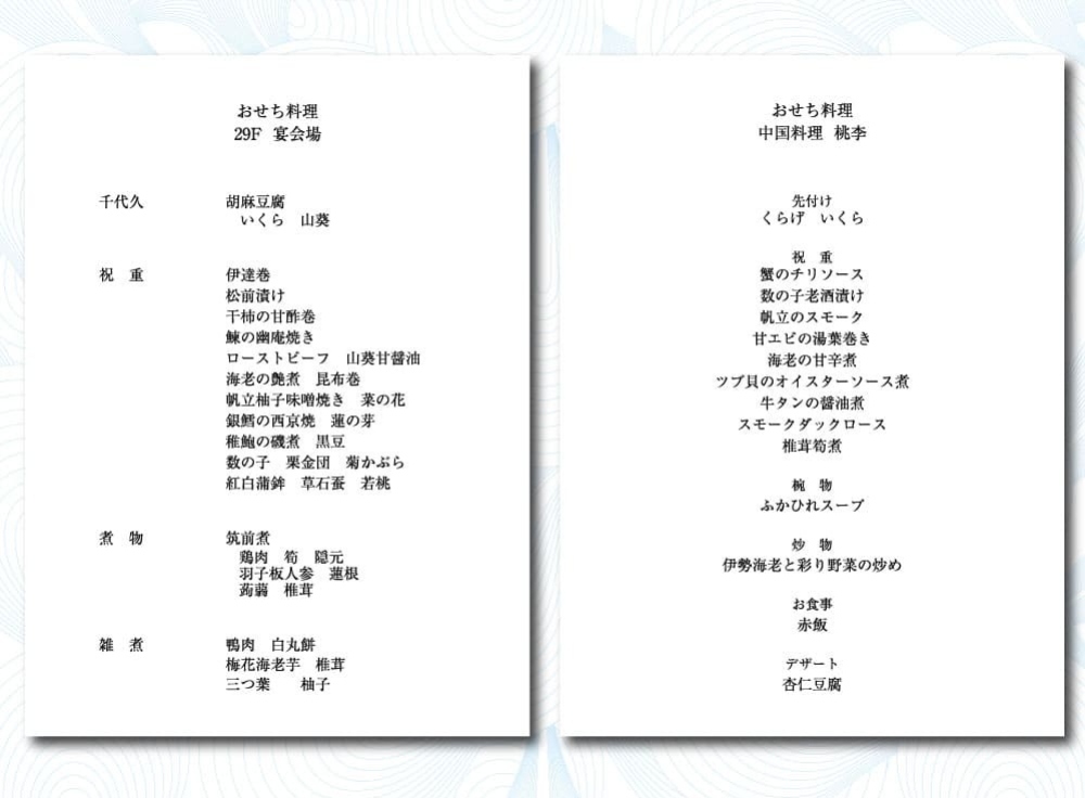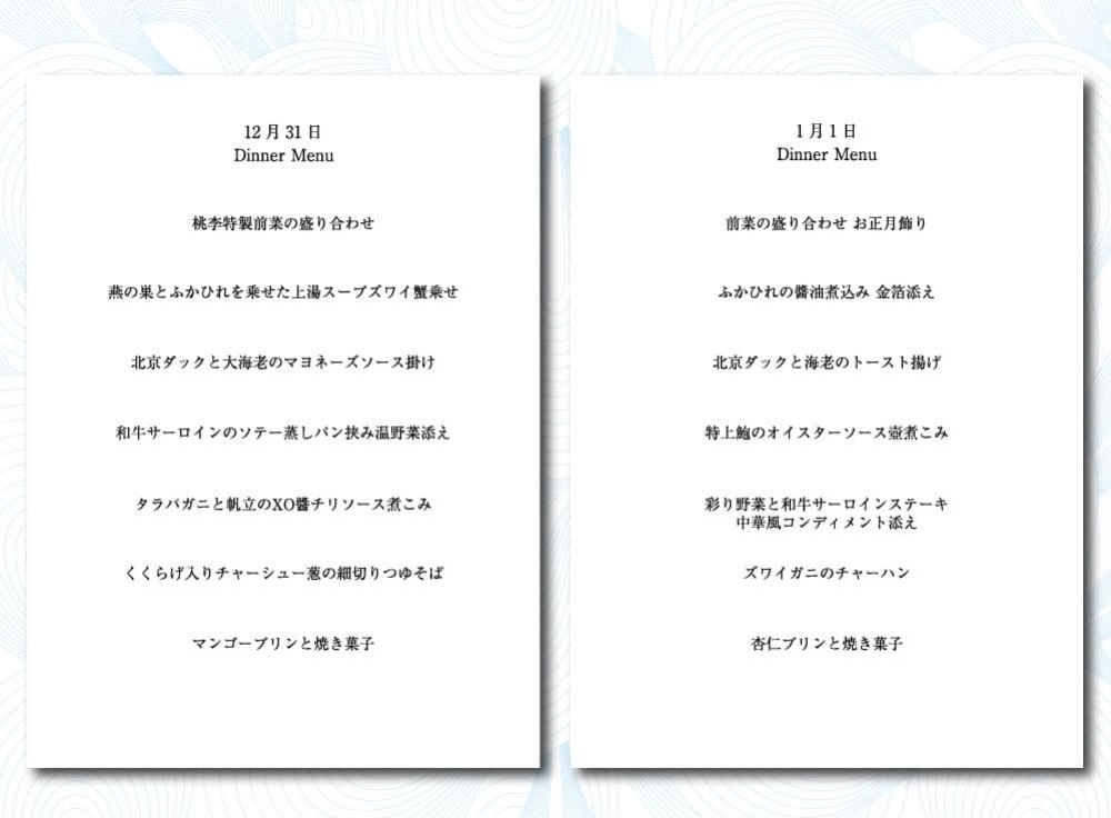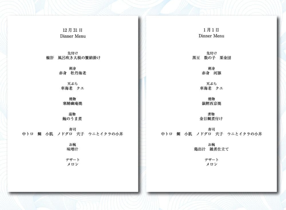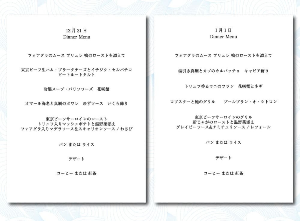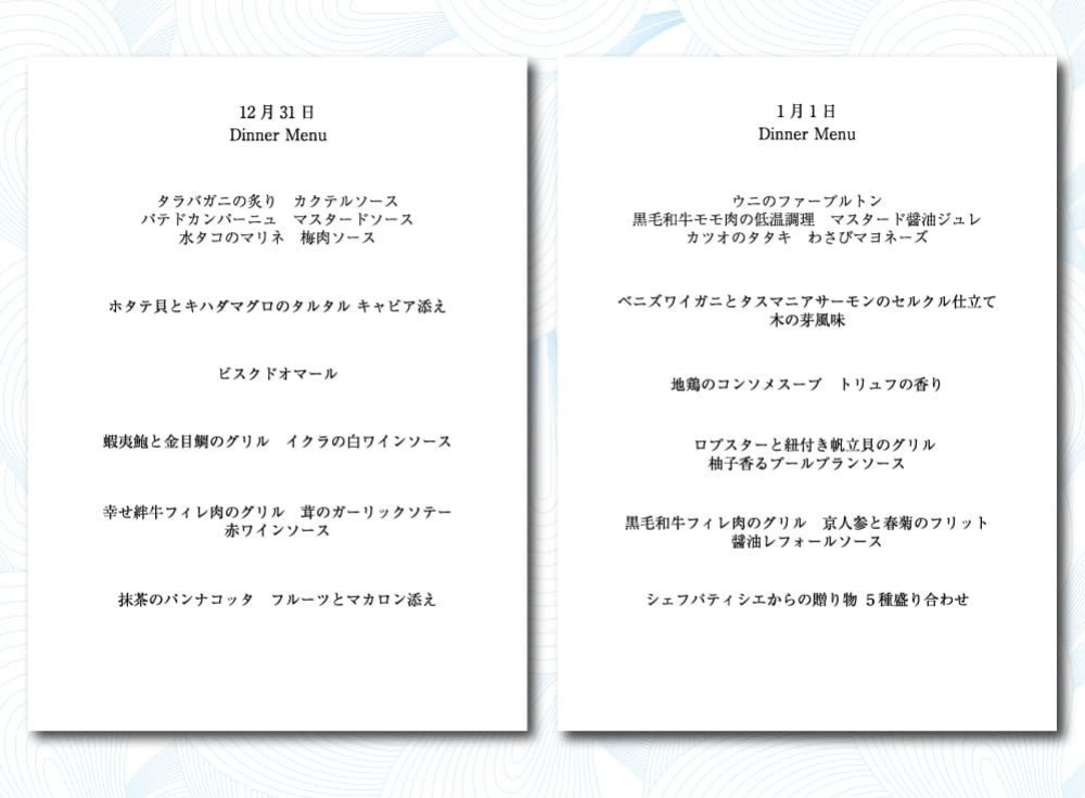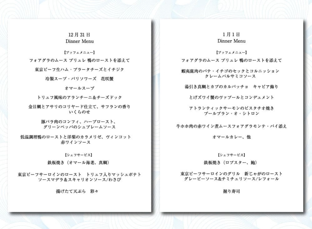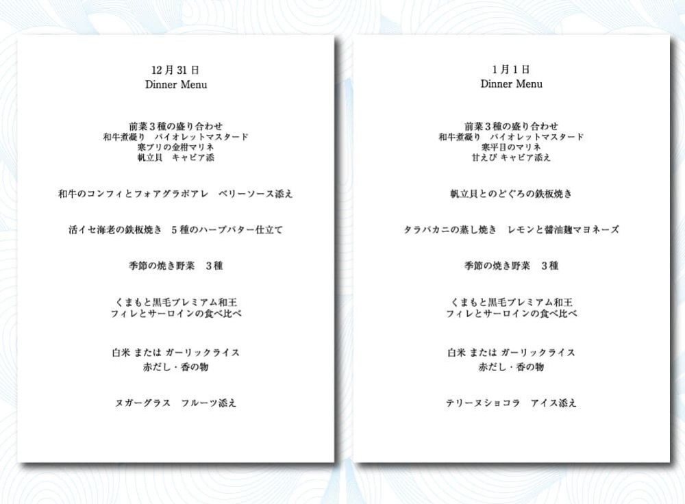 - NEW YEAR STAY PLAN 2026 年末年始2食付き宿泊プラン お食事のご案内