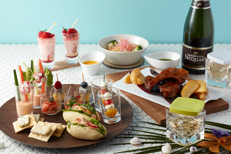 今年は、チキンと野菜のオーロラソースのミニドッグやバーベキューソースのスペアリブなど写真を撮りたい場面が増えそうな豪華なフードメニューと、高品質のシャンパーニュとして世界トップクラスの航空会社やホテルでも選ばれている「ジャカール」をフリーフローでお楽しみいただける贅沢なプランとなっております。