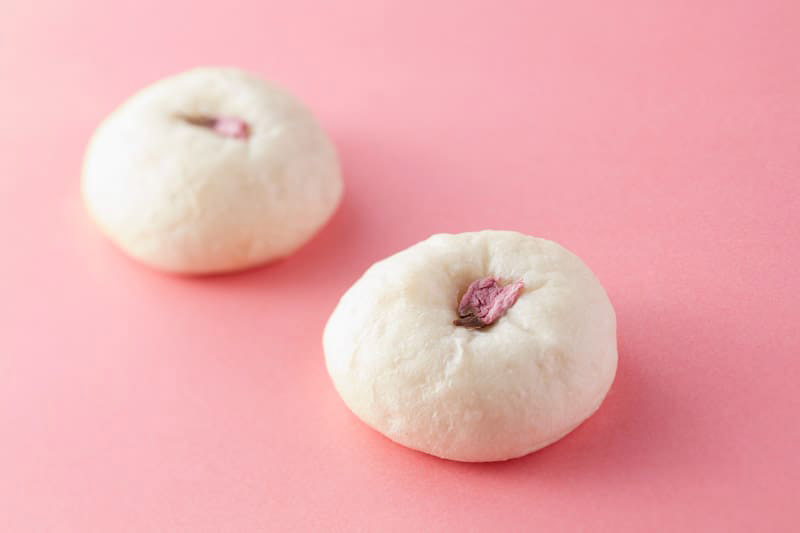 ふんわりもちっとした食感のパン生地に、もちもちの求肥と桜風味の白あんを包み込み、アクセントとして塩漬けを上に乗せて焼き上げました。白あんには桜のリキュールと着色料を使用していない天然の桜ピューレを混ぜ込み、ほのかな桜の風味を感じられるパンです。