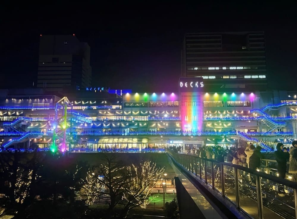 イルミネーションは通年で楽しめますが、冬季限定で青色のイルミネーションが加わる演出もあり、よりロマンチックな雰囲気に。シーサイドデッキからは、レインボーブリッジや東京タワー、お台場海浜公園まで広がる夜景を一望でき、歩くだけで“特別な夜のはじまり”を感じられるでしょう。