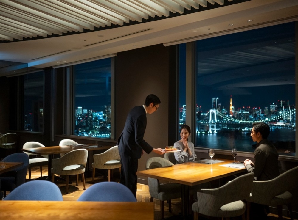 レインボーブリッジが見える客室や大井ふ頭のオレンジ色に染まる夜景など、都心の高層ビルの合間から見える景色とは異なるお台場ならではの解放感と躍動感にあふれる眺望が広がります。