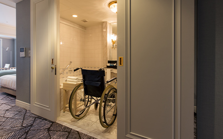 客房房門寬度加大至85公分,讓輪椅使用者方便進出。開門後,房門會自動緩慢關上,毋須動手關門。