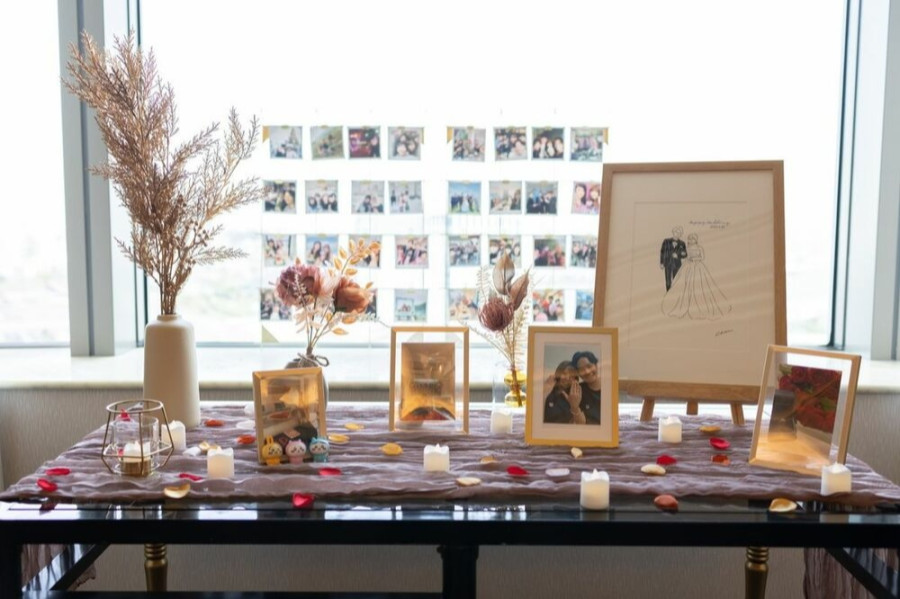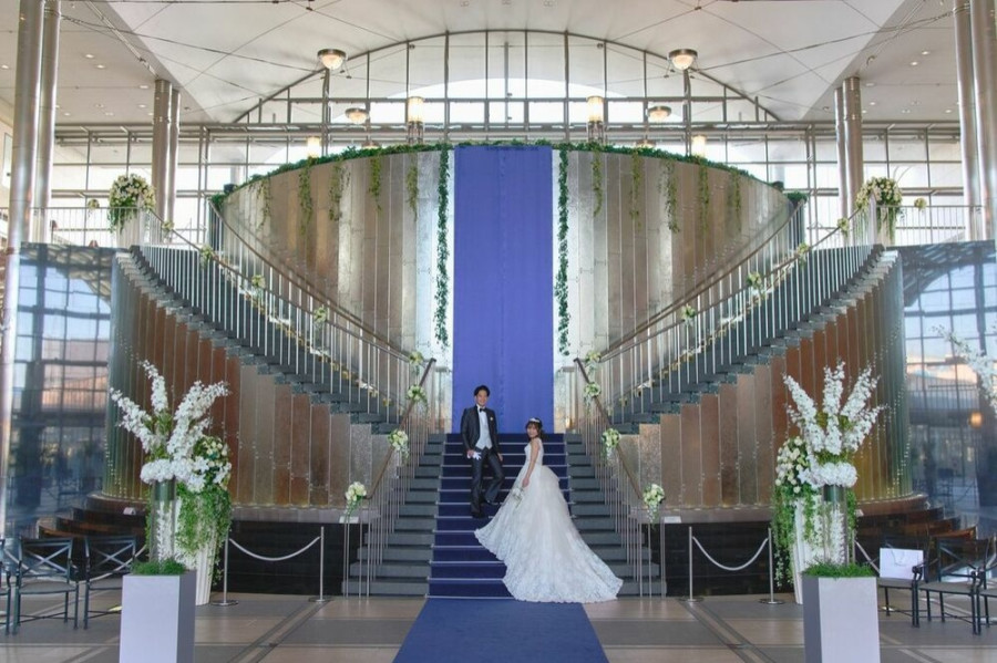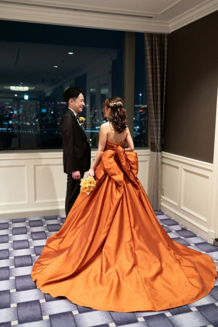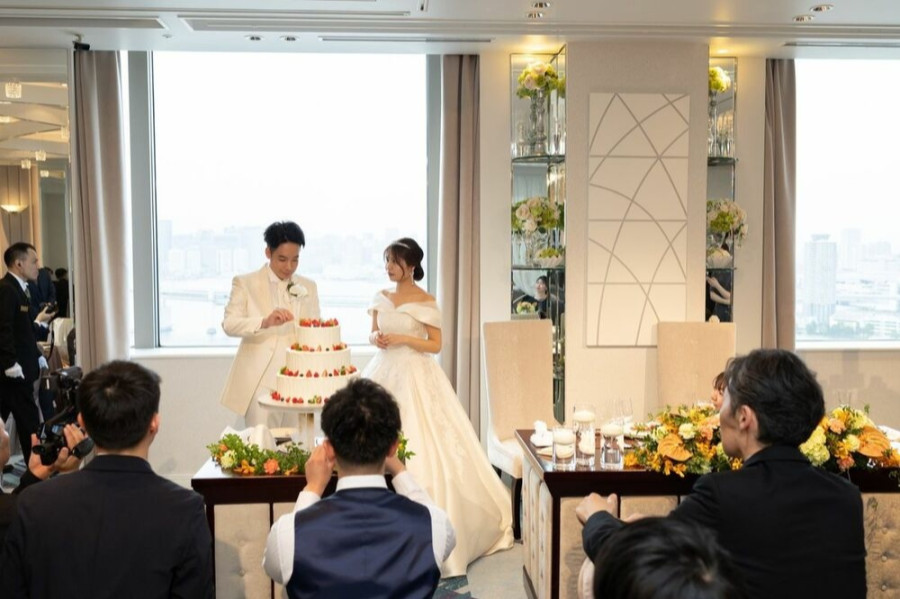 披露宴会場は豪華な雰囲気で、高層階からのお台場の景色を